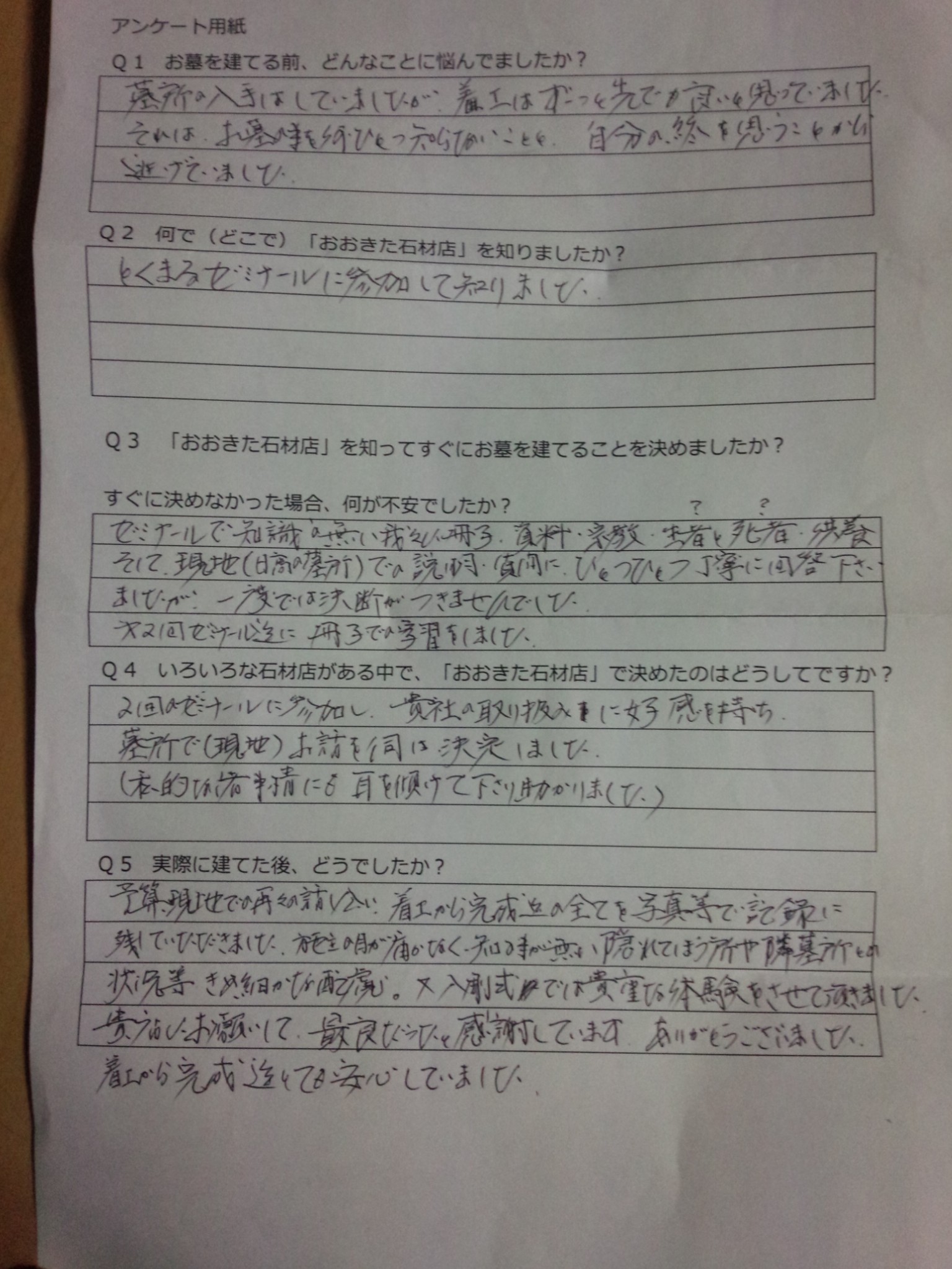 2回のゼミナール(まちゼミ)に参加し、貴社の取り組みに好感を持ち、墓所で(現地)お話を伺いして決定しました。
