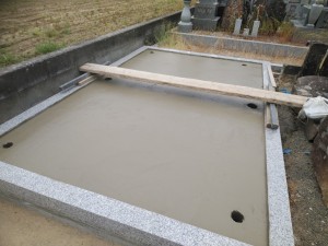 非常にたくさんのご先祖様のお墓が並ぶので、しっかりとコンクリートを施工します。