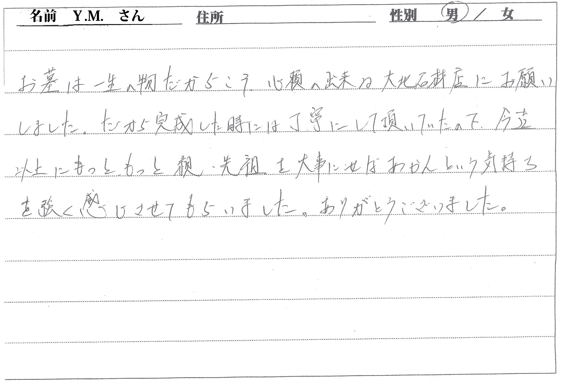 お墓は一生の物だからこそ、信頼のできる大北石材店にお願いしました。