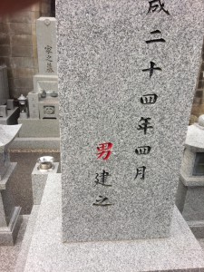 その建てた人が生きているなら、朱文字と言って、赤い(朱色)を入れます。
