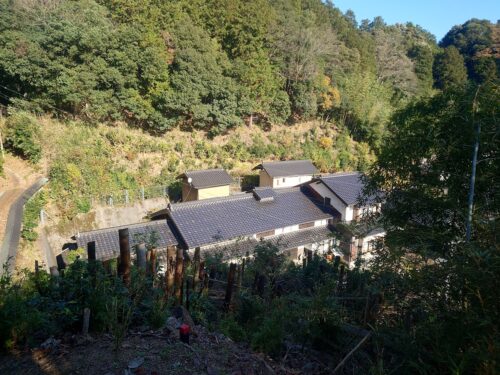 このような、小高い山の上に田舎のお墓はよくありますが、お墓の石、材料、コンクリートなどすべてをここまで上げなくてはいけない。その上まで上げるコストは平地のお墓にはかからない経費です。