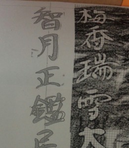 ②書家の先生に原寸大の文字原稿を作成していただく。