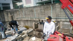 ここの墓地で、ガンコマサ(防草舗装)と石張工事。