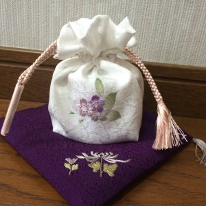 総絹織物の高級納骨袋です。一点一点、伝統工芸士の安部さんが作り上げた最高級品です。お子様、ペット用の納骨袋もあります。