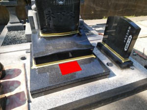 で、唯一、この墓地で「信頼棺」構造のお墓が1基のみあります。私が建てました。このお墓は「免震、耐震構造」であると共に、「雨が降っても、納骨室内に雨水は浸入しない」構造です。