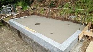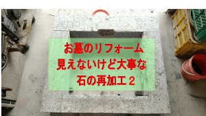 とりあえず完成です。建っている状態では、十分な加工は難しいのですが、このような取り外したタイミングでなら、ある程度きれいに加工することができます。納骨口の蓋となる水鉢のサイズの関係であまり大きくできず、6号の骨壺を入れるのは難しいかもしれませんが、通常の5号までは楽に納骨できると思います。