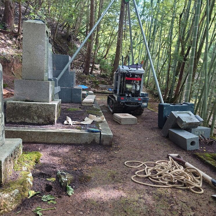 そういう場所はほとんど、お墓の引っ越しも困難な場所です。急斜面、人が通るだけの道、曲がりくねった先、など、ほとんどがお墓工事が困難です。しかも、「お墓じまい」と違うのは、お墓の石を再利用するので、そのまま運ばないといけない、ということ。