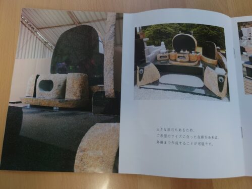 気になっているお墓のデザインのパンフレットが出来たと聞き、いただきました。