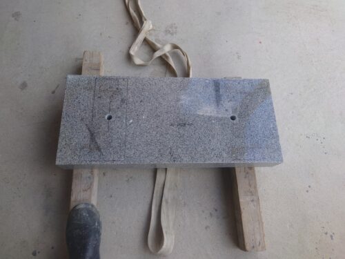 で、やっと完成。穴が開いているのは、耐震ボルトが貫通するための穴。「地震に強いお墓」はこれが空いていないとダメです。