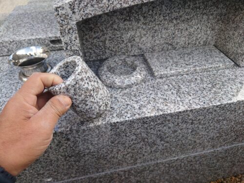 花立石は意外と欠けやすく、移動もしずらく、重いので、納骨の際、移動しなくてはいけないので、大変なのです。こうすると、少し見た目は違和感がありますが、おそらくすぐ慣れて、気にならないはずです。なおかつ、花立石がないと、広く感じて、すっきりしたイメージになります。水鉢石も納骨しないので、必要なくなり、なくしました。