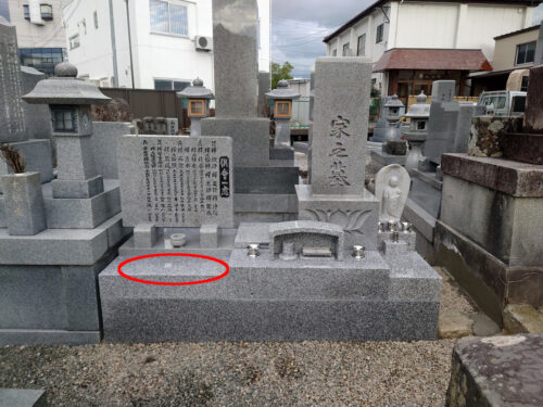 これです。信頼棺の蓋石です。この中にカロートの納骨口があります。ここはまだシール作業しておりません。