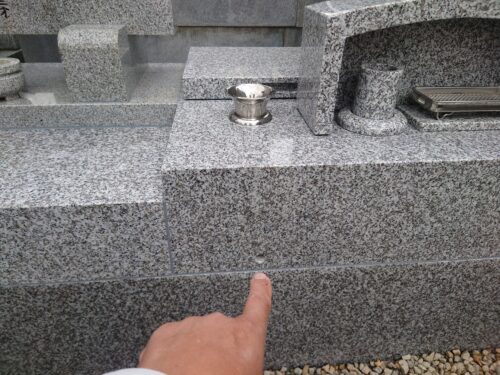 ここに、水抜きの穴が開いております。両方の花立の穴に開いています。