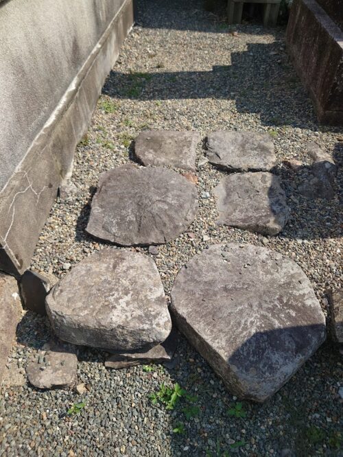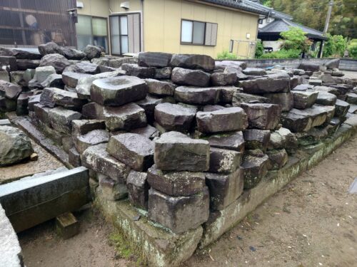 いずれもこの玄武洞から採掘された石です。現在は国の天然記念物として、保護されており、採掘は出来ませんが、たくさんの玄武岩が今でも豊岡市内のいたるところで使用されています。