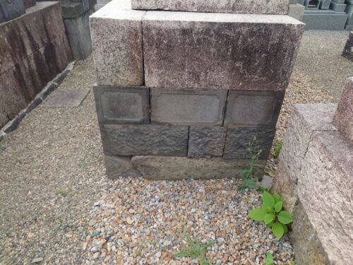 こちらは、先日、工事させていただいた寺院墓地の一角。階段の代わりに玄武岩が使われています。