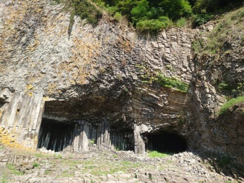 こちらは比較的正六角形に近い玄武岩。実は玄武岩は正六角形だというイメージを持たれている人が多いですが、正六角形の玄武岩は極めて少なく、このような六角形の玄武岩がほとんど。中には五角形の玄武岩もあります。
