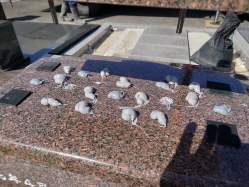 ただ、石は欠けることがあり、上の石の出っ張りが破損してしまったら、簡単にずれるので、石ではなく、鉄製にしたのが、耐震棒です。それをお墓は屋外に設置するので、錆びないようにステンレス製にするのが、普通になってきています。