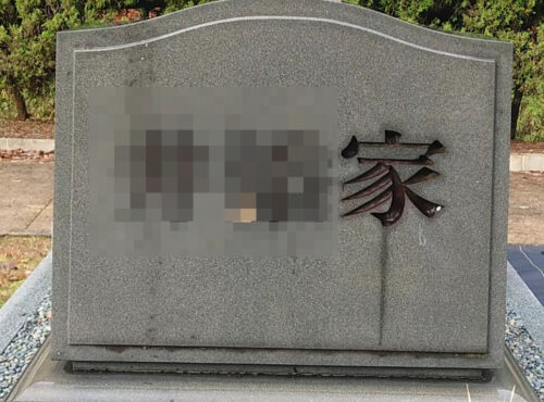 モザイクをかぶせていますが、これは活字、明朝体の文字ですね。明朝体のお墓の文字はあまり見かけませんが、デザインによってはアリなのかもしれません。