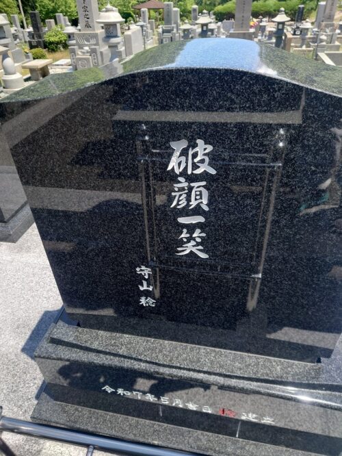 施主様のたってのご希望で、「破顔一笑」という言葉を彫刻しました。