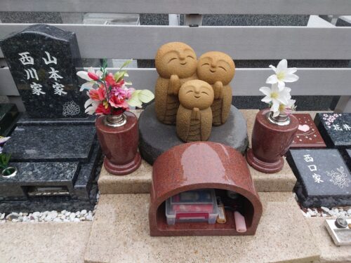 一区画を二つに割って和型のお墓が2基、小さく寄り添っているようなものもあります。