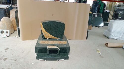 もう一社、お付き合いしている石材商社、南印度洋行。この会社の今、一押しのお墓は「天竺」という、南印度から採掘されるとても色の濃い、濃緑の石、M1Hという石を使ったお墓シリーズです。でも今や、お墓のみならず、様々な石を使った小物も作っています。