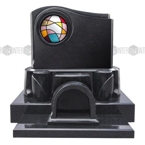 真ん中に丸く開いた穴にステンドグラスをはめ込み、インパクトが極めて強いデザインとなっています。石という強固で鋭利、強いというイメージを少し和らげる役割を担っています。ステンドグラスという「割れやすい素材」(実は強固で割れにくいです)を使用することで、石の持つ力強さと同時に、強固というイメージも和らげてくれます。