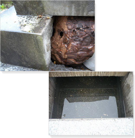 水だけではありません。スズメバチが巣を作っていた、ヘビが入り込んでいた——石材店の間ではよく聞く話ですが、一般の方にはほとんど知られていません。大切なご先祖様のお骨が、そのような環境に置かれているという現実があります。