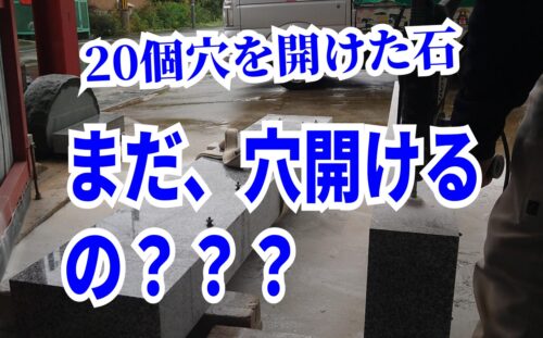 お墓の移転工事。ただ移転するだけではなく、いろいろと大変なのです。ほとんど新しいお墓を作るのと、変わりないレベルです。 お墓の一番下になる石。まずは穴を開けていきます。 どれくらい開けるか。。。一つの石に10個開けます。 でもって、二つで20個...