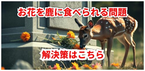 お墓にお供えされている花を鹿が食べてしまう事案を多く見かけます。 どうしたらいい?? 特に田舎の墓地では、全国どこでもそうなのかもしれませんが、お墓にお供えしている供花の花びらの部分のみ食べてしまうので、茎のみ残っている場面を多く見かけま... -