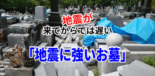 地震が来れば、お墓は倒れる、というのは昔の話。今は地震が来ても倒れないお墓が当たり前になってきています。それでも地震が来たら倒れてしまうお墓があります。その理由は何か? どうすれば地震に強いお墓が建つのか、お教えします。