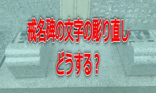 戒名碑に彫刻してある文字を修正する、ということ、ごくごく稀ですがあります。そういう場合どうするか? という方法を提案しています。 耐震ボルト施工の戒名碑は手法が限られていますが、その分、地震が来た時、倒れるリスクが大幅に減るので、メリットデメリットを考えたとき、メリットの方が大きいと思います。 -