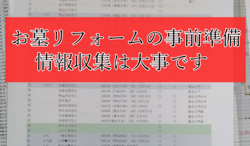 お墓の工事は事前準備も大事。ご先祖様が多くいらっしゃる家は特にご先祖様の情報収集が大事です。