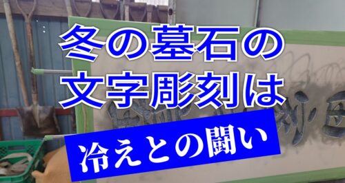 冬の墓石の文字彫刻は辛い