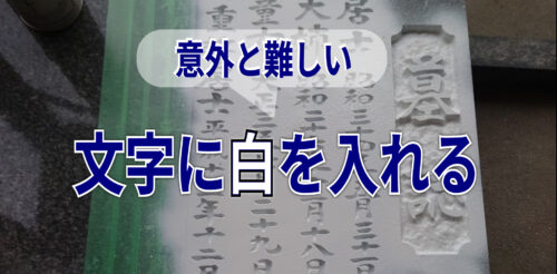 お墓の文字に色を入れるという話題です。特に白色は難しいです。 お墓の文字彫刻をした時、一つのルールがあります。正面の大きな文字、「○○家の墓」とかお題目とかが彫刻されている文字ですね。これは基本色を入れないことが多いです。文字に色を入れるの...