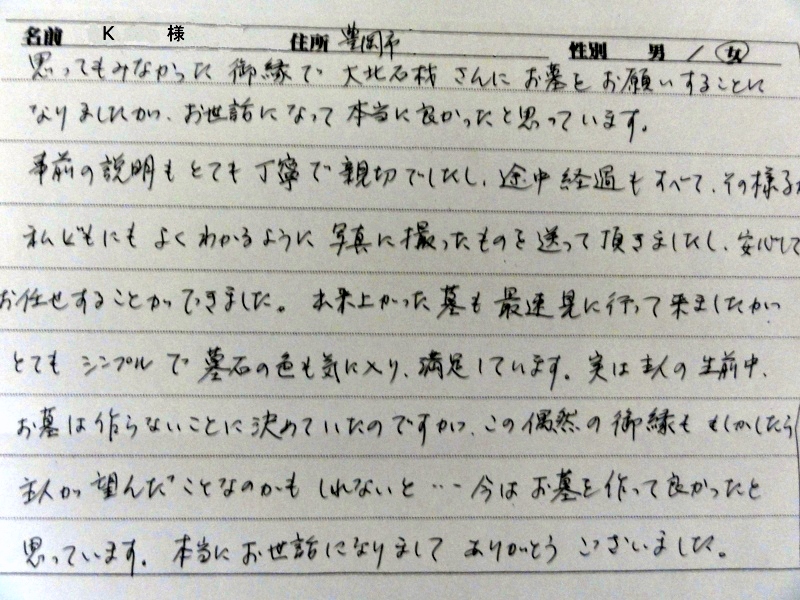 本当にいいお墓ができたな、と思っております。